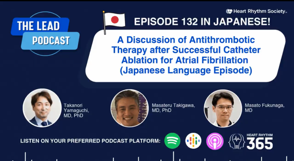 東京科学大学の滝川正晃先生と小倉記念病院の福永真人先生をお招きしてHeart Rhythm Society(米国)のPodcastでアブレーション後の抗凝固療法について議論しました。