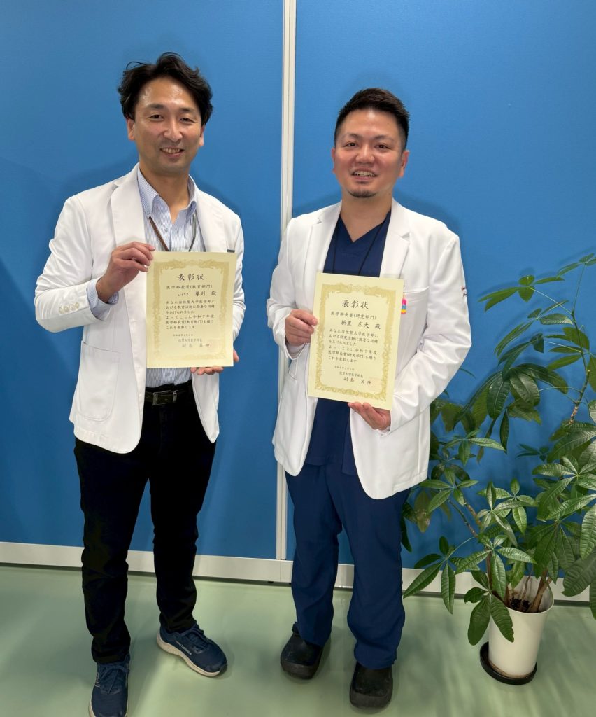 受賞のお知らせ 2026 1/14 award/表彰 uncategorize/すべて 2026年1月14日 山口尊則先生が医学部長賞(学生教育)新里広大先生が医学部長賞(研究)を受賞されました。 award/表彰 uncategorize/すべて よかったらシェアしてね! URLをコピーしました! URLをコピーしました! インドからバンサル先生が短期留学に来られました Heart Rhythm Society (HSR) podcastのお知らせ 関連記事 お知らせ 2026年1月21日 Heart Rhythm Society (HSR) podcastのお知らせ 2026年1月21日 インドからバンサル先生が短期留学に来られました 2026年1月14日 Student Researcherの学会発表と受賞のお知らせ 2025年12月12日 お知らせ 2025年12月1日 【最優秀賞】受賞のお知らせ 2025年11月26日 論文掲載のお知らせ「European Heart Journal誌」 2025年9月26日 論文掲載のお知らせ「Circulation Reports」 2025年9月1日 コメント コメントする コメントをキャンセルコメント ※ 名前 ※ メール ※ サイト 次回のコメントで使用するためブラウザーに自分の名前、メールアドレス、サイトを保存する。 上に表示された文字を入力してください。